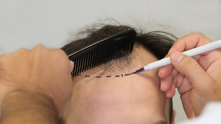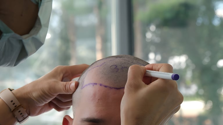 Recipient Site Creation: Tiny incisions are made in the balding areas to prepare for the transplantation.